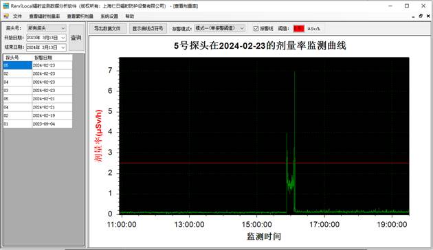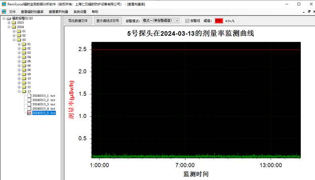 6、數(shù)據(jù)分析:免費(fèi)提供功能強(qiáng)大的RenLocal輻射監(jiān)測(cè)數(shù)據(jù)分析軟件,可通過曲線和棒狀圖的形式分析歷史劑量率和累積劑量數(shù)據(jù)以及實(shí)時(shí)查詢報(bào)警數(shù)據(jù)與統(tǒng)計(jì)分析等